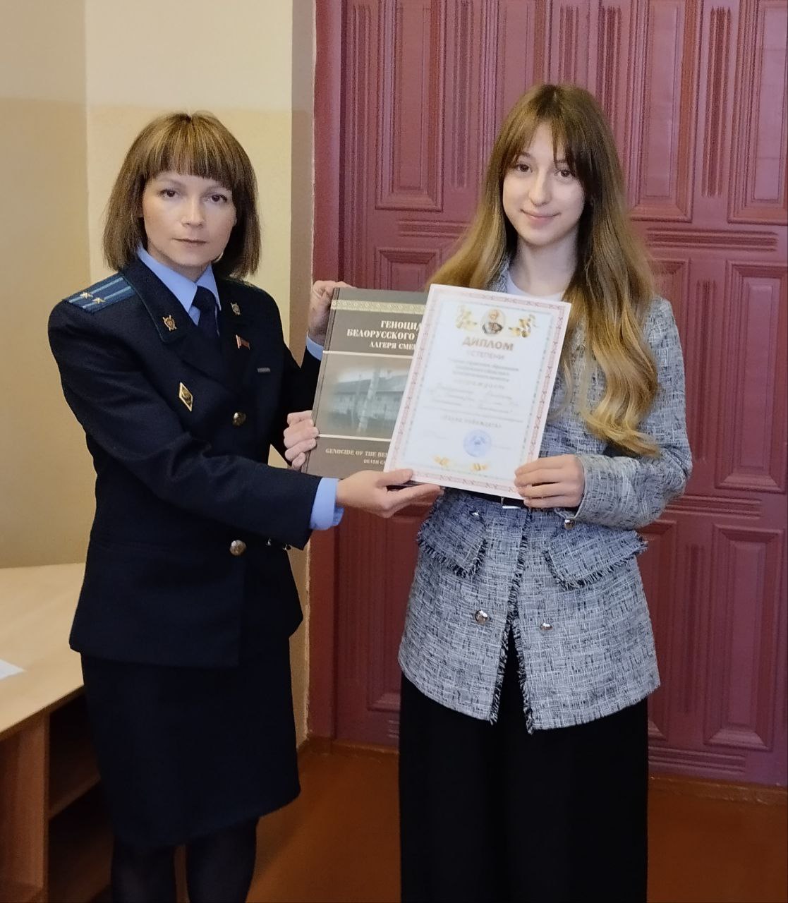 Учащаяся 11 класса Хайрулина Альбина (руководитель Апанович Н.А.) отмечена дипломом степени в VI открытой областной научно-практической конференции «Наука побеждать» и от прокуратуры Гродненской удостоена особым специальным призом. От души поздравляем и гордимся Альбиной и её руководителем!