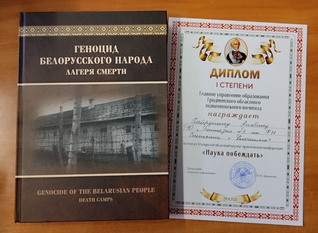 Поздравляем авторов фотопроекта «Чтобы помнили, чтобы поняли», учащихся ГУО «Гимназия № 1 имени Ф.М.Синичкина г.Слонима» Мистюкевич Марию и Мороз Арину с победой в VII Республиканском молодёжном фестивале-конкурса «Медиасфера - 2025».