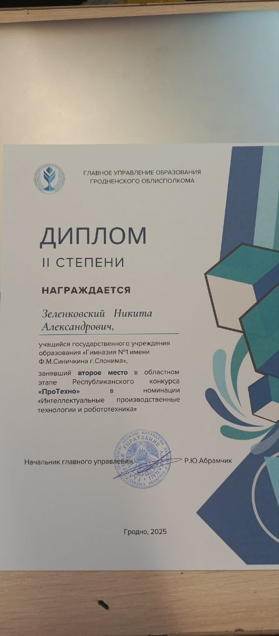 10-11 декабря в УО «Национальный детский технопарк» прошёл заключительный этап Республиканского конкурса научно-технических проектов инженерно-технических центров учреждений среднего образования «ПроТехно»! Мы гордимся тем, что гимназию на этом конкурсе достойно представил учащийся 7 «А» класса Зеленковский Никита! Он стал победителем областного этапа и был награждён Дипломом 2 степени! В финале Никита также удостоен специального приза за свою работу! Это замечательное достижение не только для Никиты, но и для всей гимназии! Поздравляем талантливого учащегося и его руководителя Саванца А.В., желаем дальнейших успехов в научных инициативах!