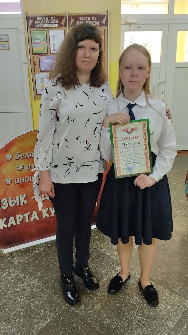 Шчыра віншуем вучаніцу 11 класа Міхалік Алесю і яе кіраўніка Шундрык Ж.Ю. з 1 месцам ў раённым этапе завочнага творчага конкурсу!!! Так трымаць і далей!!!