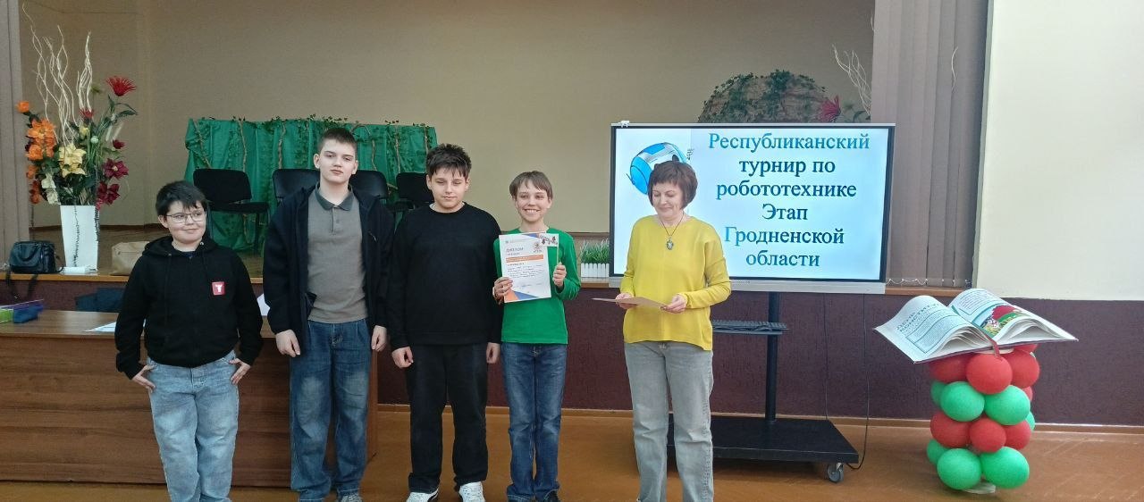 Команда учащихся гимназии завоевала Диплом I степени на областном этапе Республиканского турнира по робототехнике в номинации «Робофутбол» (руководитель Саванец А.В.)! Отдельно гордимся Зеленковским Н., который удостоен Диплома II степени в номинации «Следование по линии». Ваши старания, творчество и командный дух - отличный пример для всех! Желаем новых побед и вдохновения на пути к вершинам технологий!