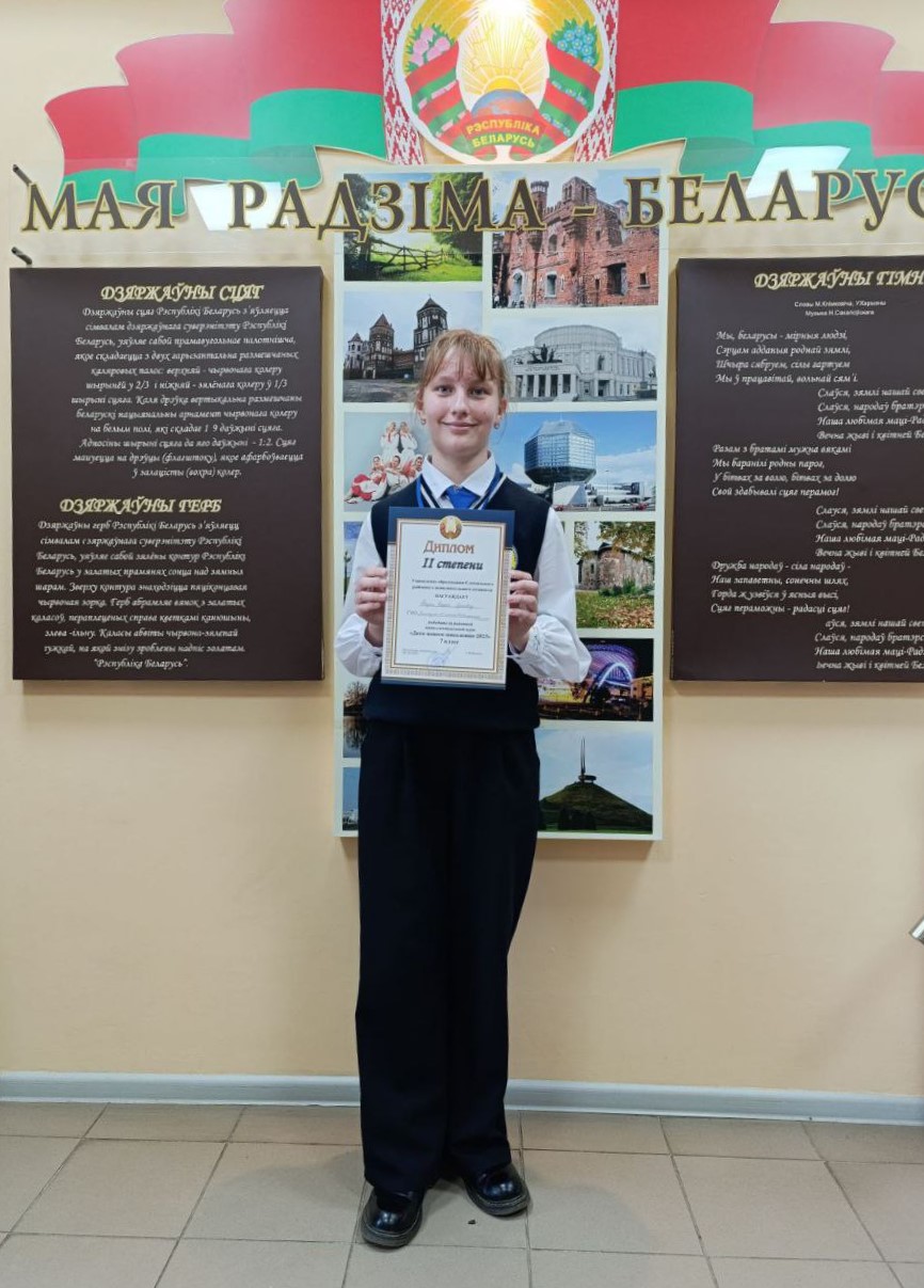 26 красавіка 2025 г. на базе ГрДУ ім. Я.Купалы адбылася абласная краязнаўчая НПК "Купалаўская вышыня". Па выніках вочнага выступлення ў секцыі "Літаратурная Гродзеншчына" навучэнка 11 класа Палтарак Вікторыя адзначана дыпломам II ступені!