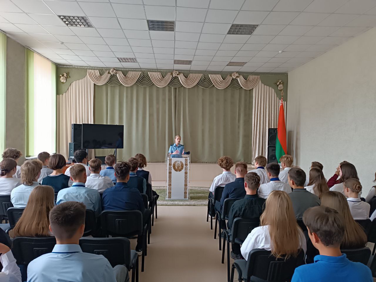 Юлия Викторовна выступила перед учащимися с информацией «О ходе расследования уголовного дела о геноциде белорусского народа в годы Великой Отечественной войны и в послевоенный период». Она рассказала подросткам о геноциде и тех ужасах, с которыми столкнулось мирное население нашей страны в годы Великой Отечественной войны. Также обратила внимание на важность сохранения исторической памяти, недопущение нацизма на современном этапе развития общества, об уголовной ответственности за отрицание геноцида.