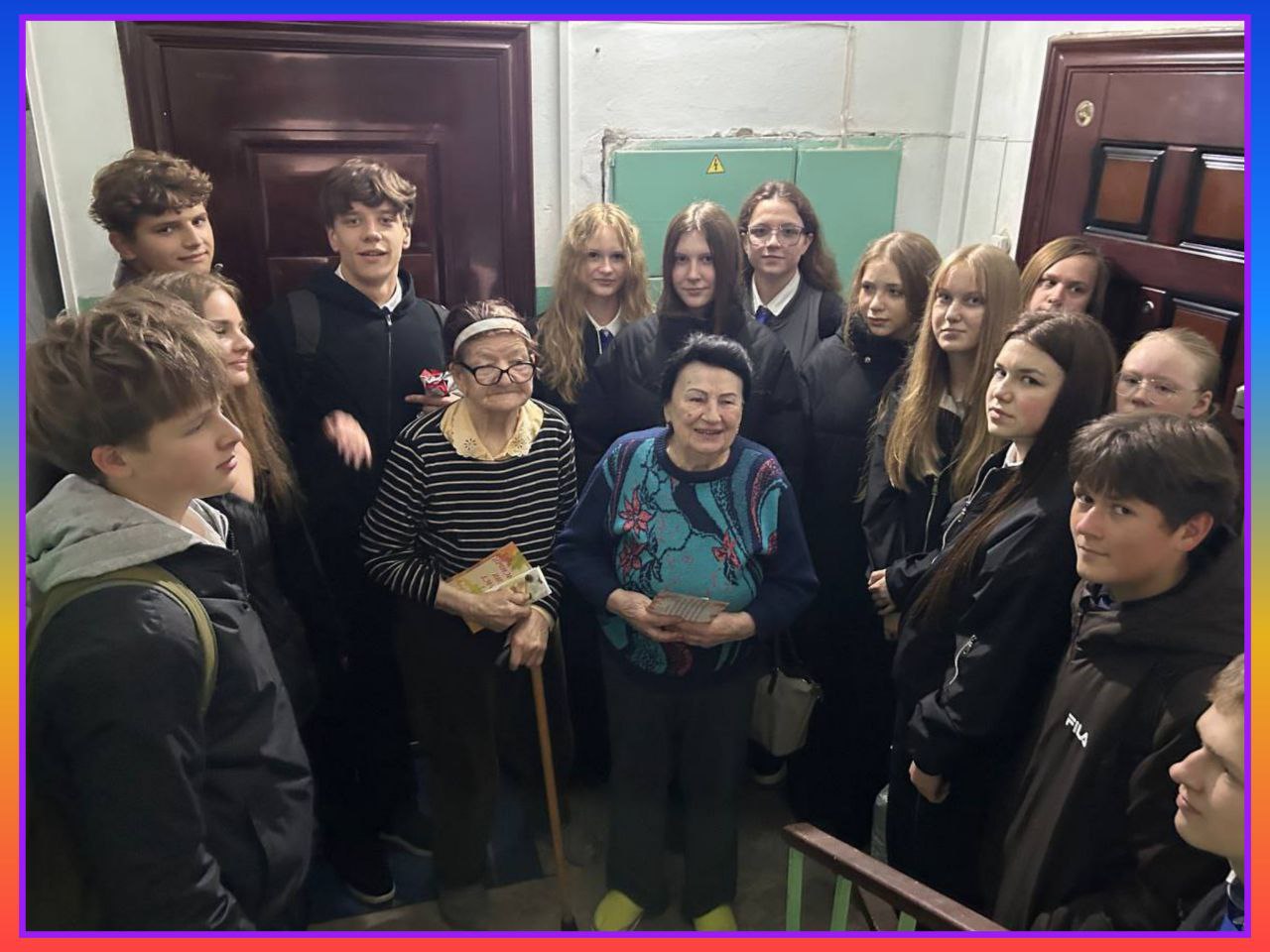 Учащиеся 10 «Б» класса ГУО «Гимназия № 1 имени Ф.М.Синичкина г.Слонима» поздравили с Международным днём пожилых людей одиноко проживающих Семенюк Анну Мартыновну и Вилькицкую Галину Михайловну.