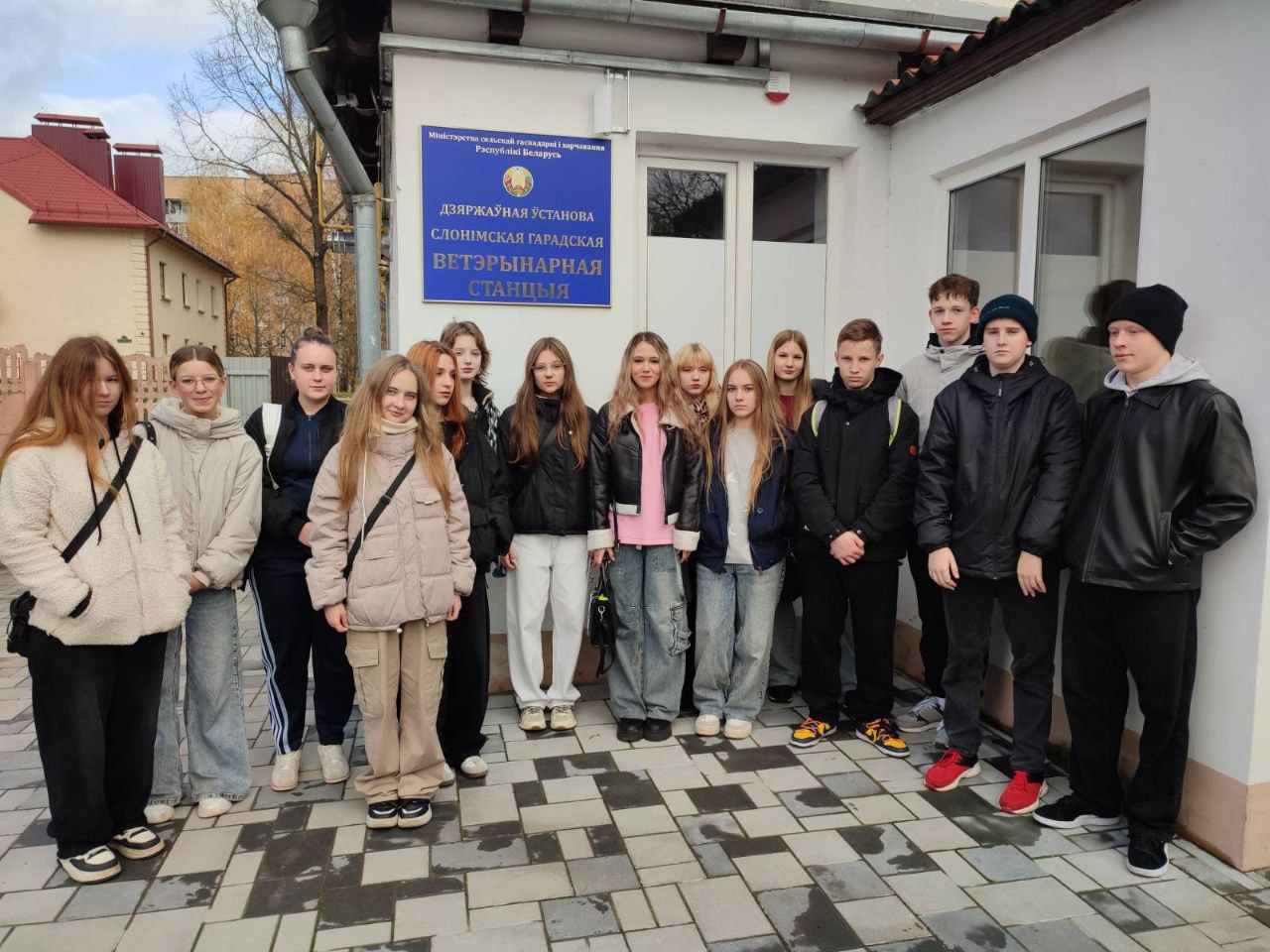 4 ноября учащиеся 9 «А» класса посетили Слонимскую районную ветеринарную станцию. Ребятам показали кабинет первичного приёма, хирургический кабинет, где животным делают операции. Во время экскурсии учащимся рассказали о различных видах животных, которые обслуживаются на станции, и о том, как важно заботиться о каждом из них, как правильно ухаживать за домашними питомцами и что делать в случае их болезни. Ежедневно на станцию слонимчане приносят своих братьев меньших. Кому-то надо сделать профилактическую прививку, кому-то сделать перевязку или провести операцию. Ребята воочию увидели, как оказывается помощь и осознали, что важно проявлять терпение и внимательность при работе с животными. Ребятам рассказали о специфике работы ветеринарного врача как об очень интересной и вместе с тем ответственной. Учащиеся узнали, где можно получить данную профессию. Посещение ветеринарной станции стало не только познавательным, но и вдохновляющим.