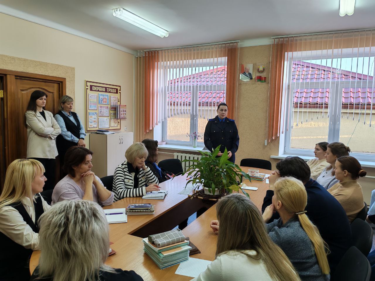 5 ноября 2025 года в ГУО «Гимназия № 1 имени Ф.М.Синичкина г.Слонима» старший следователь Слонимского районного отдела следственного комитета Петрова Юлия Олеговна провела профилактический диалог с трудовым коллективом по вопросу «Профилактика кибер преступлений, мошеннических действий», а также по профилактике преступлений и административных правонарушений безопасного нахождения в глобальной сети Интернет. Юлия Олеговна напомнила об уголовной ответственности за хранение, распространение и употребление наркотических средств.