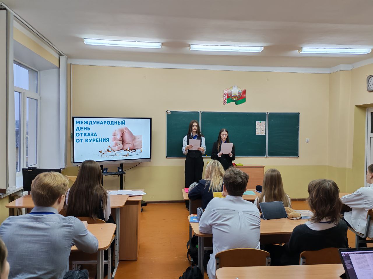 20 ноября в Международный день отказа от курения информационная группа СОВА также не остались в стороне, ребята провели для гимназистов профилактические минутки «Курить не модно-дыши свободно», во время которой в очередной раз напомнили о здоровом образе жизни.