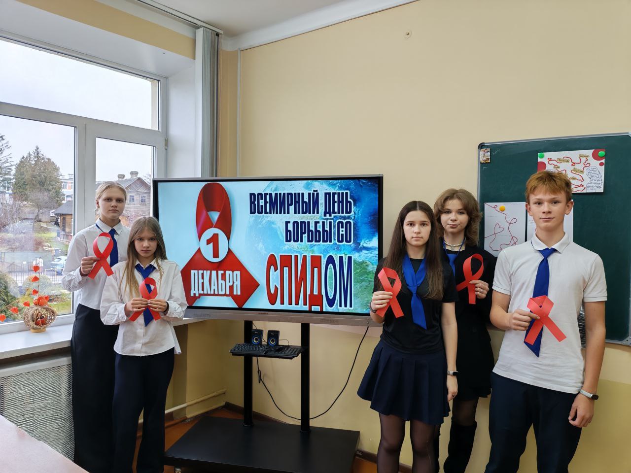 1 декабря во Всемирный день борьбы со СПИДом в ГУО «Гимназия № 1 имени Ф.М.Синичкина г. Слонима» прошли профилактические минутки, демонстрирующие солидарность гимназистов в борьбе с этой эпидемией. А символом борьбы со СПИДом является красная ленточка, которая обозначает поддержку, сострадание и надежду на будущее без СПИДа.