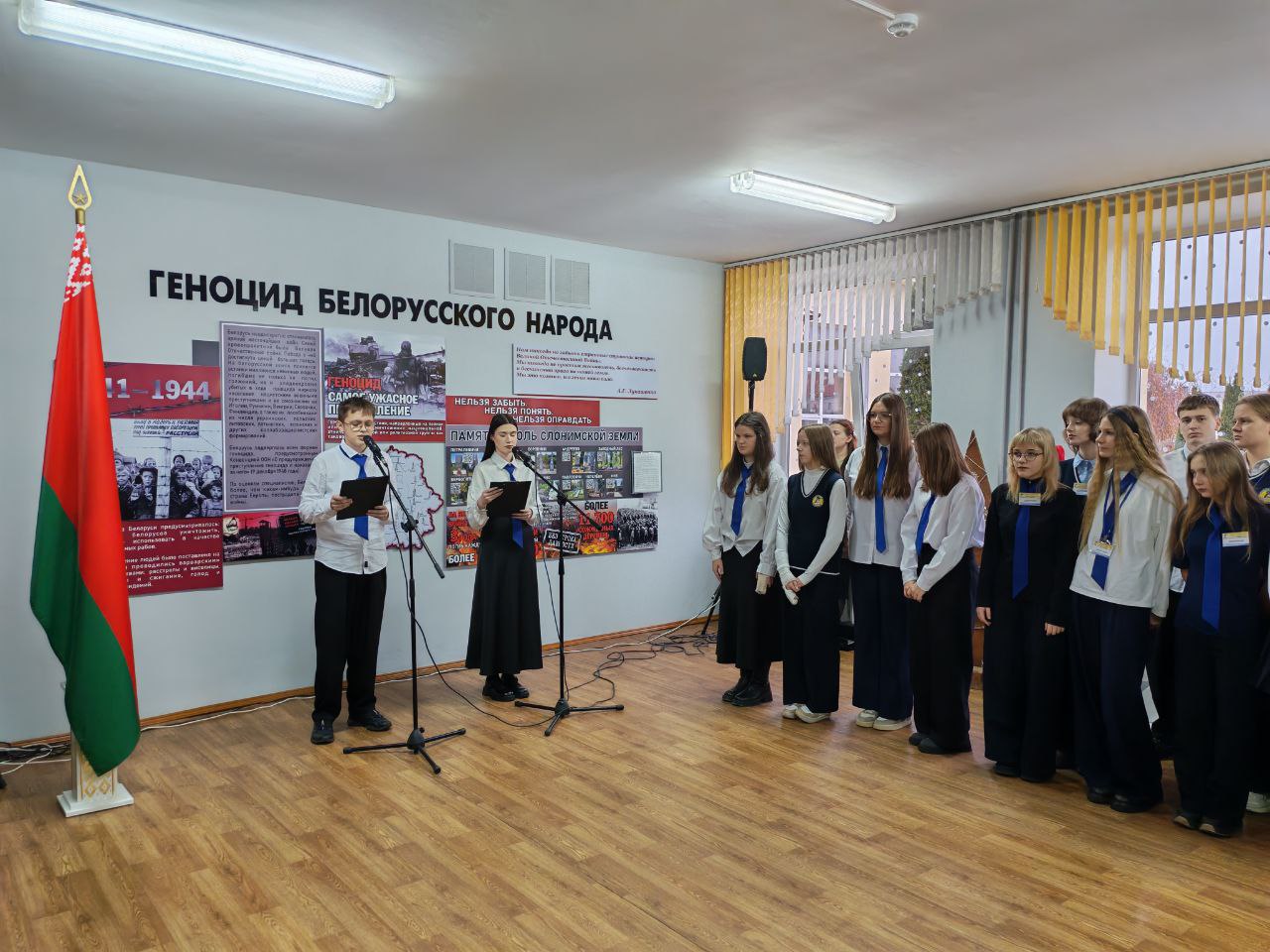 Митинг-реквием «В сердцах навеки память сохраним» в память о жертвах геноцида прошёл 9 декабря в ГУО «Гимназия №1 имени Ф.М.Синичкина г.Слонима». Гимназисты почтили память невинных жертв трагических страниц истории Великой Отечественной войны. Мы всегда помним, что имена жертв, которые понес советский народ в годы Великой Отечественной войны должны оставаться в памяти потомков, чтобы подобные трагедии не повторялись. Пусть этот день станет напоминанием о важности мира и единства.