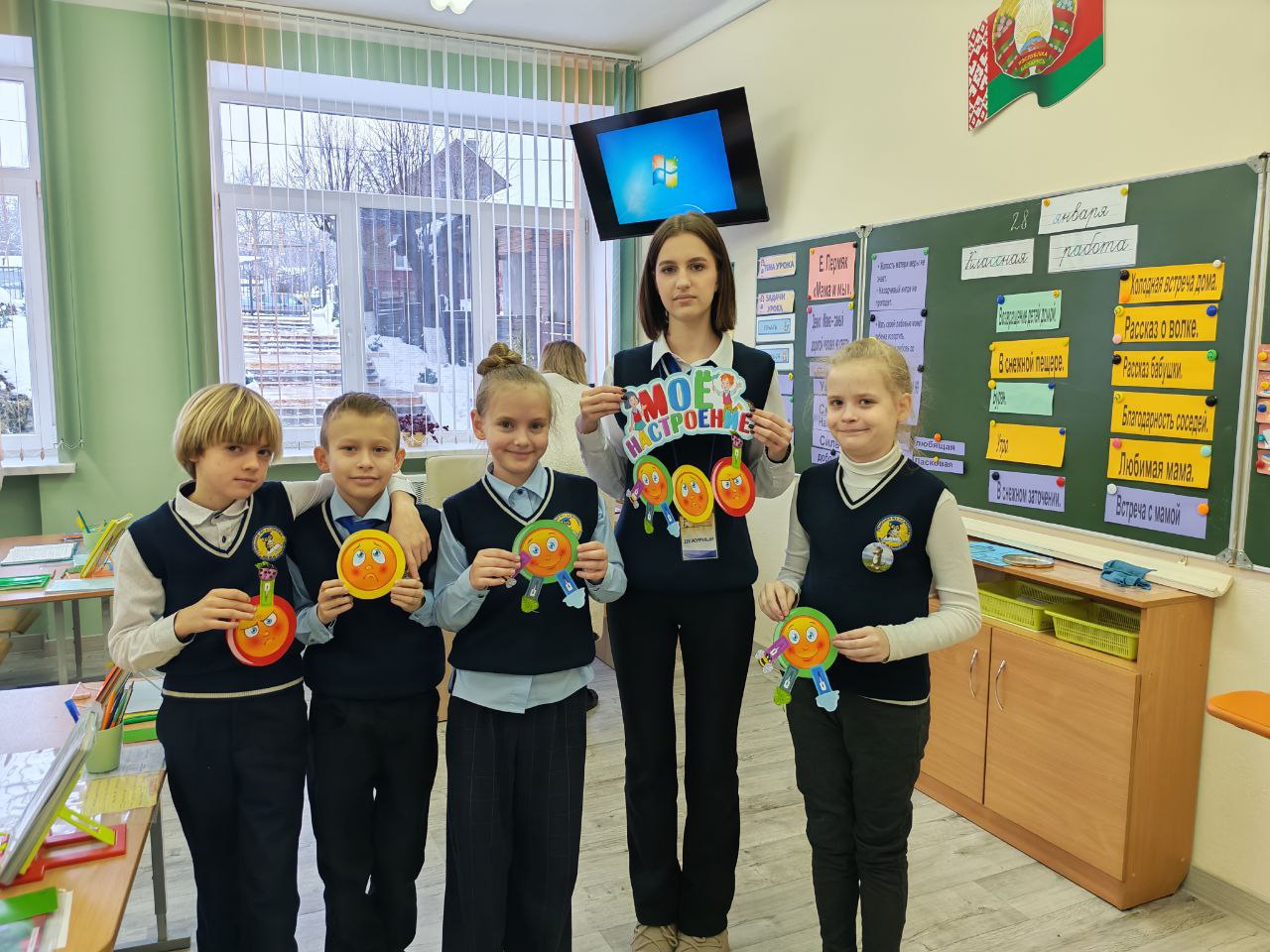 Гимназистам предложен выбор цветных стикеров по настроению, которые они должны были изобразить. Таким образом ребята могли поднять своё эмоциональное состояние «здесь и сейчас», чтобы в дальнейшем учиться анализировать и мыслить позитивно.