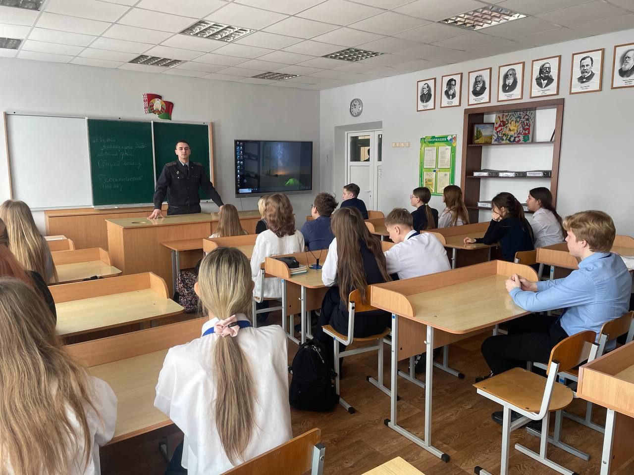 В рамках единого дня профилактики 25 февраля 2026 года в ГУО «Гимназия № 1 имени Ф.М.Синичкина г.Слонима» прошли профилактические беседы с участковым инспектором ИДН Слонимского РОВД старшим лейтенантом милиции Кулешевичем Алексеем Сергеевичем по вопросам профилактики преступлений и административных правонарушений, а также безопасного нахождения в глобальной сети Интернет и кибербезопасности. Алексей Сергеевич также напомнил об уголовной ответственности за хранение, распространение и употребление наркотических средств.