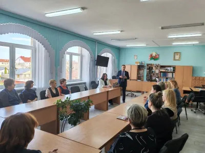10 апреля 2026 года для трудового коллектива государственного учреждения образования «Гимназия № 1 имени Ф.М.Синичкина г.Слонима» прошла встреча с судьёй суда Слонимского района Оксаной Владимировной Онуфреней на тему «Бдительность - залог безопасности». Оксана Владимировна акцентировала внимание присутствующих на правилах безопасного нахождения в глобальной сети Интернет и кибербезопасности.
